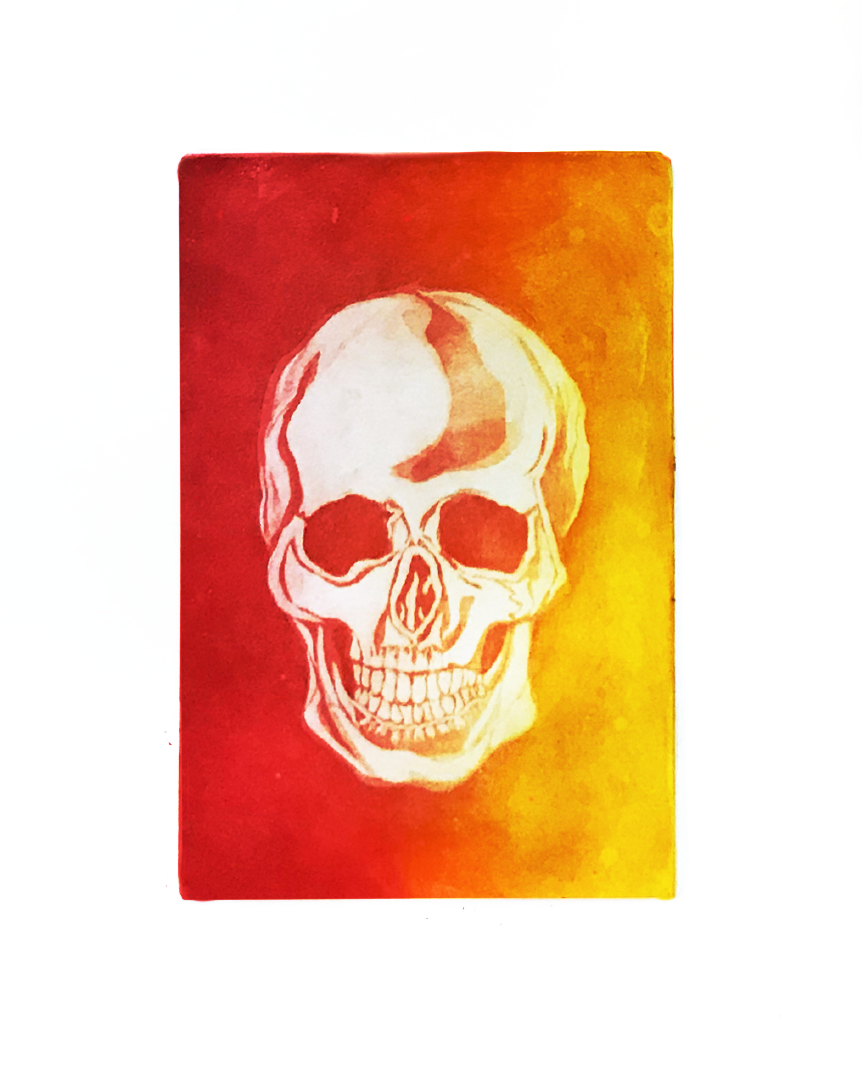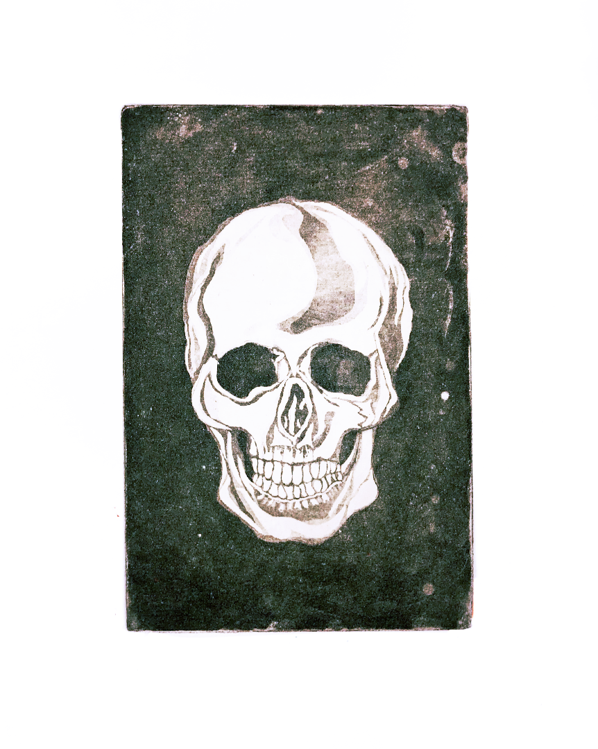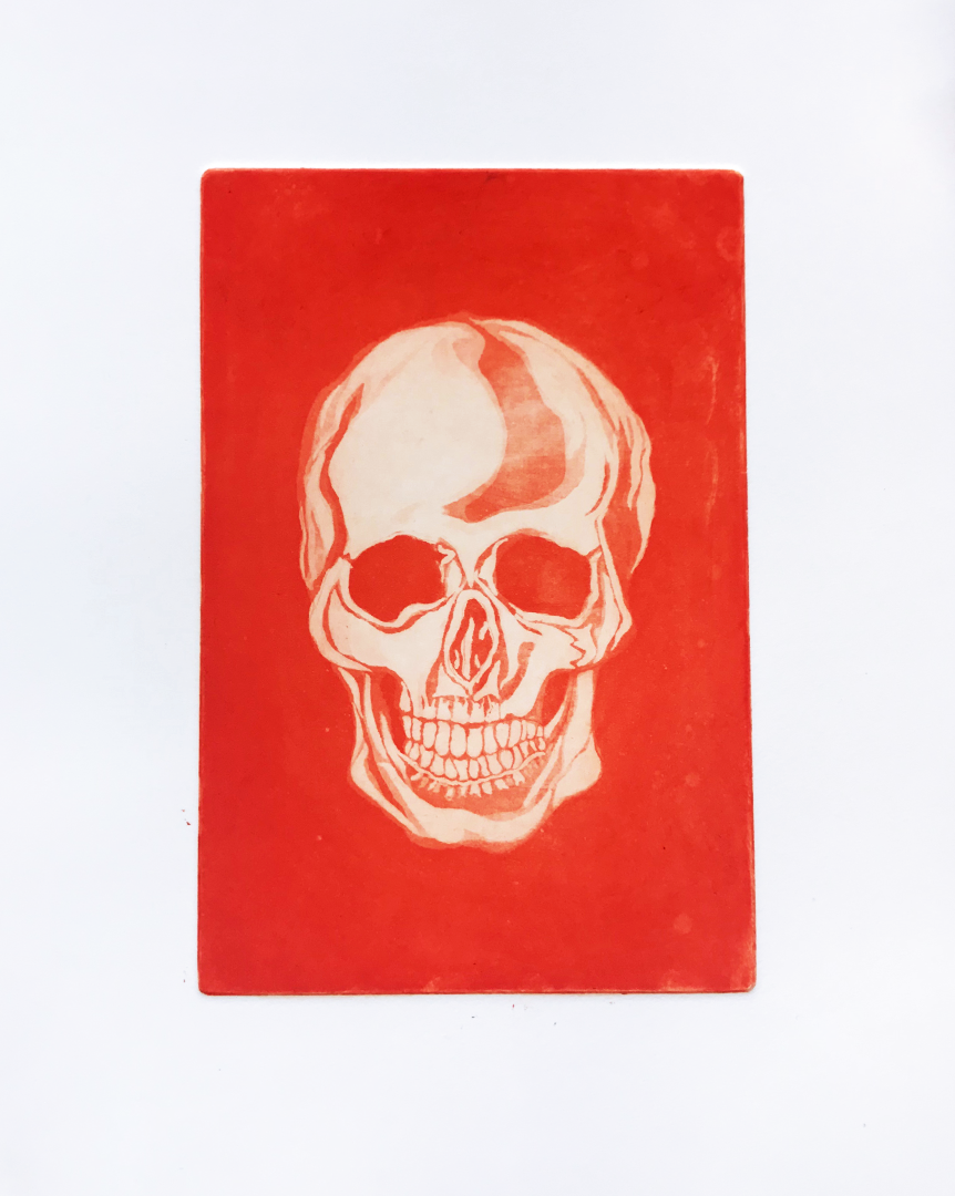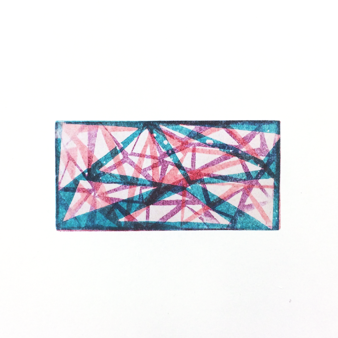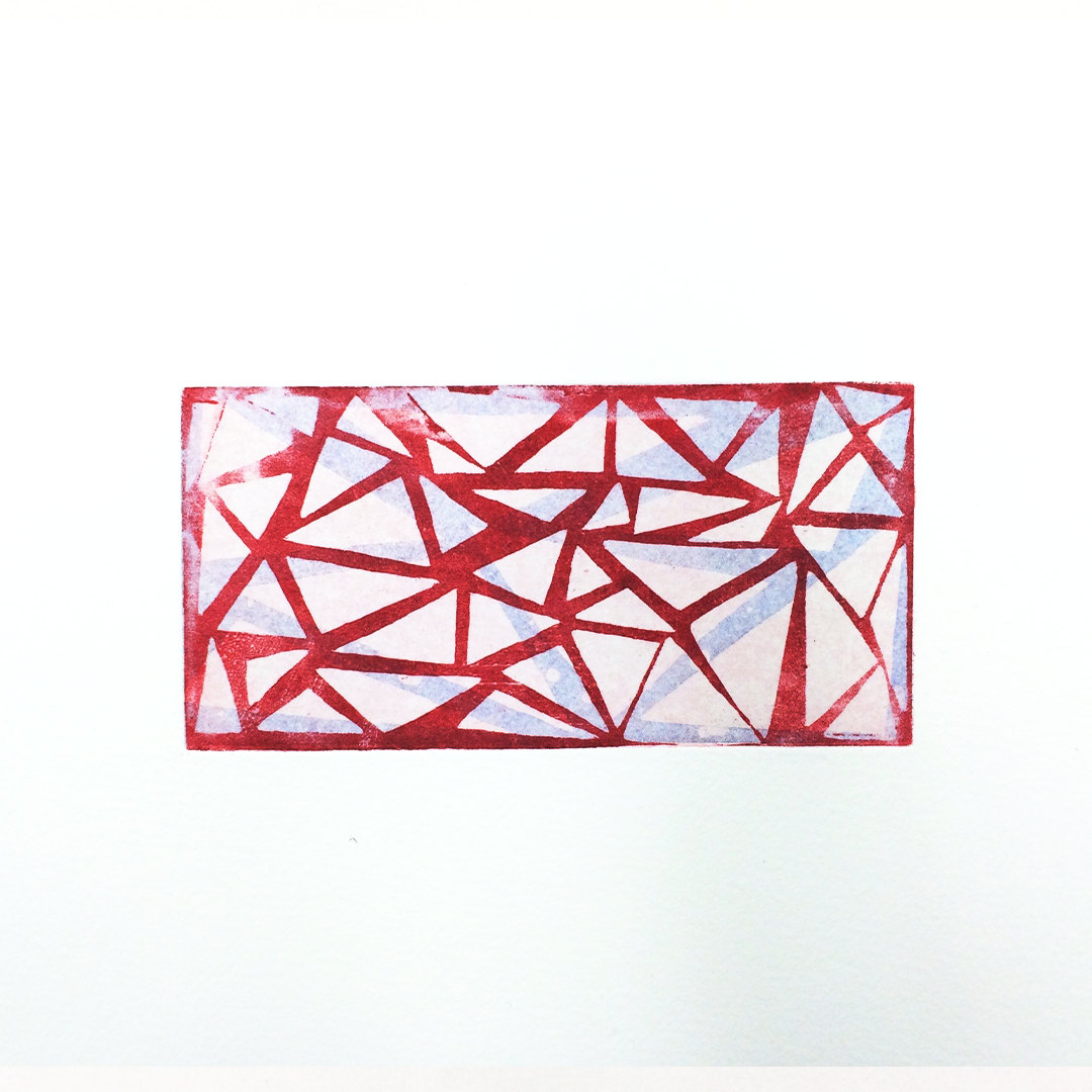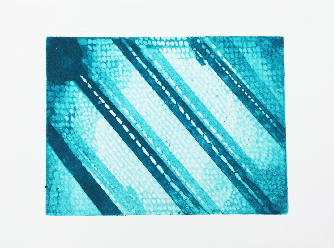 I fell in love with the process of intaglio printmaking, using acid and other metal cutting tools to build compositions of different values and layers of color.